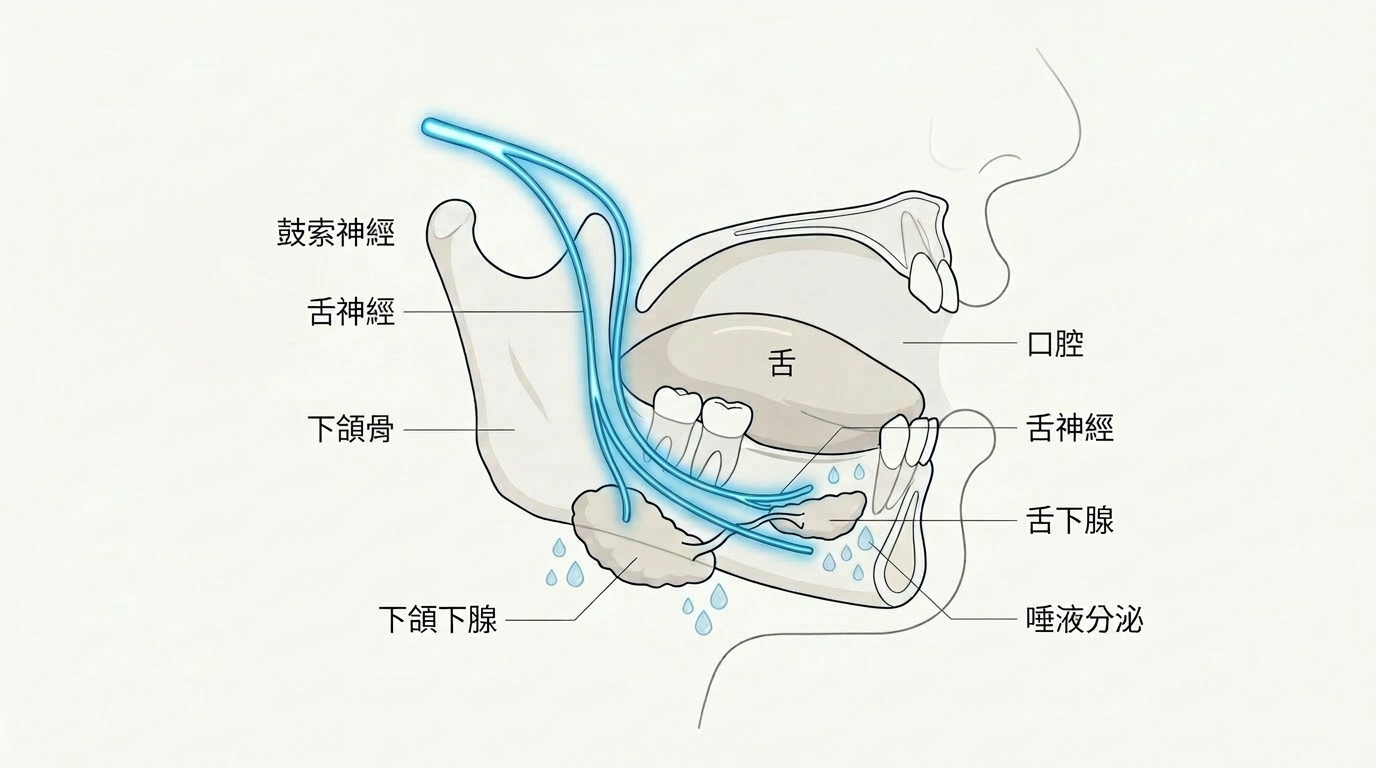 很多人出現「耳仔有事之後,覺得味道怪怪哋、食嘢淡咗」時,真正被牽連的,往往就是這條隱藏在耳朵裡的鼓索神經(1)(5)。