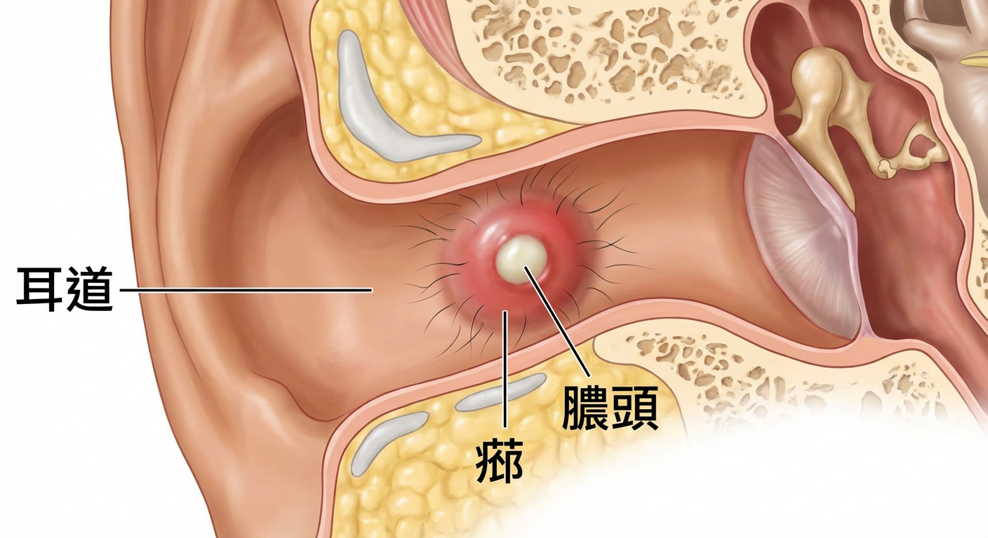 - 症狀: 若耳道皮膚受傷後出現局部化膿,摸起來會像長「暗瘡」,常伴壓痛與腫脹,有時甚至痛到連說話、咀嚼都會感到牽扯。